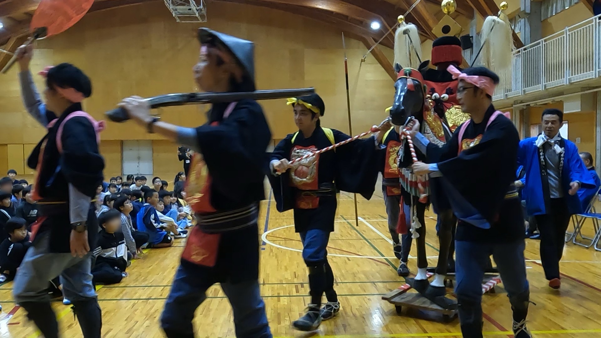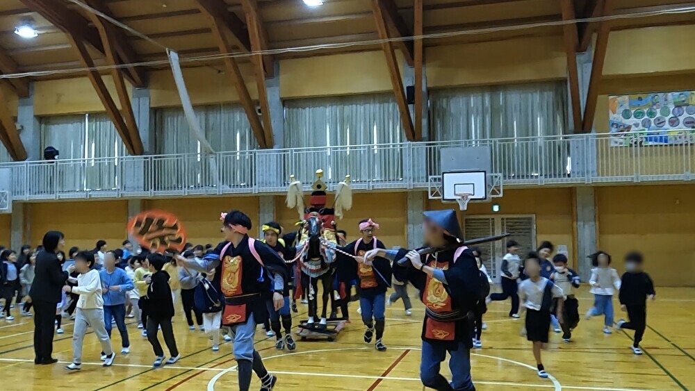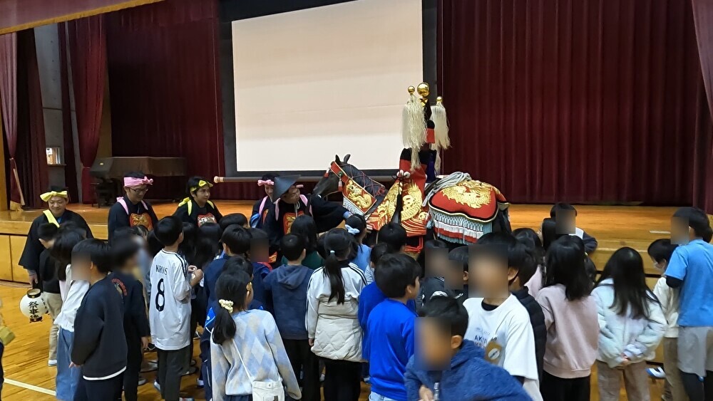 11月14日(金)梨の木小学校で 米野木お馬頭祭り出前授業を行いました 投稿日: 2026年1月2日2026年1月2日 omantohozonkaiカテゴリー: 新着情報 お馬頭祭りを紹介動画で学んでもらったあと献馬隊が壇上から口上を披露、わっさいの掛け声で体育館へ入場して生徒全員で駆け回りました。 質問コーナーではたくさんの疑問をもらい、生徒さんの興味の高さに一同大変嬉しい思いをいたしました。 献馬隊募集中、生徒のお父さん一緒にやりましょう! 生徒の皆さん10年後にお待ちしています。